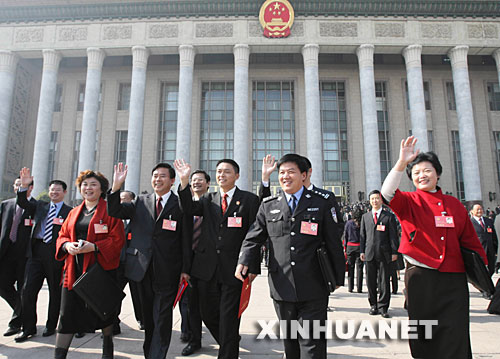 10月21日,中国共产党第十七次全国代表大会在北京人民大会堂胜利闭幕。这是代表们步出会场。     新华社记者 刘卫兵摄