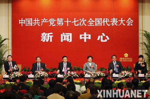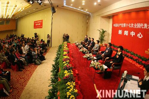 10月20日,北京十七大新闻中心举办主题为“重视未成年人教育”的集体专题采访活动,十七大代表袁贵仁、于幼军、黄晴宜、胡春华、赵实接受媒体采访。 新华社记者 李涛摄
