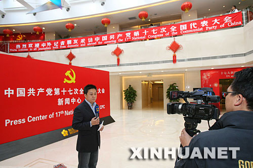 十七大新闻中心启用 已有1033名境外记者报名采访