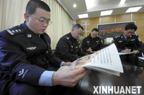 贵州省交警总队直属支队党委成员正在认真学习十七大精神(10月18日摄)。 新华社记者 杨楹 摄