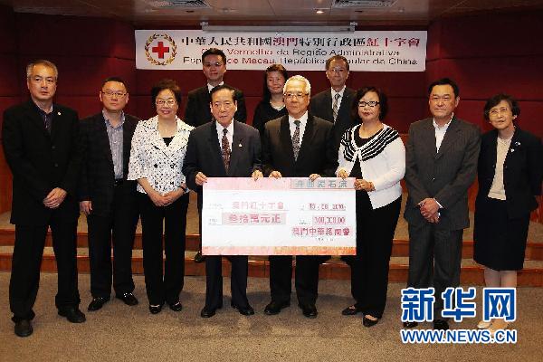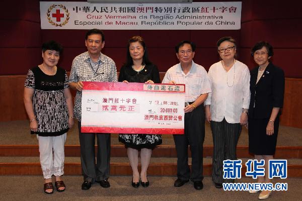 8月13日,澳门中华总商会向澳门红十字会捐赠30万澳门元,援助甘肃舟曲受灾群众。截至当日,澳门红十字会共收到澳门社会各界向舟曲灾区的捐款373.06万澳门元。 新华社发 (张金加摄)