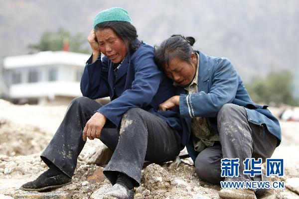 8月19日,两名妇女在曾经的家园上哭泣,悼念亲人。甘肃舟曲泥石流发生已过10余天,遭受泥石流重创的舟曲县城月圆村废墟上依然聚集着失去亲人的人们。由于泥石流灾害的特殊性,很多亲人的遗骸至今仍未找到。失去亲人的人们在废墟上或守望、或等待、或搜寻、或茫然、或伫立、或祭奠、或哭泣.....悲痛萦绕在人们的心头,都是源自对亲人不能忘却的怀念。新华社记者 任正来 摄