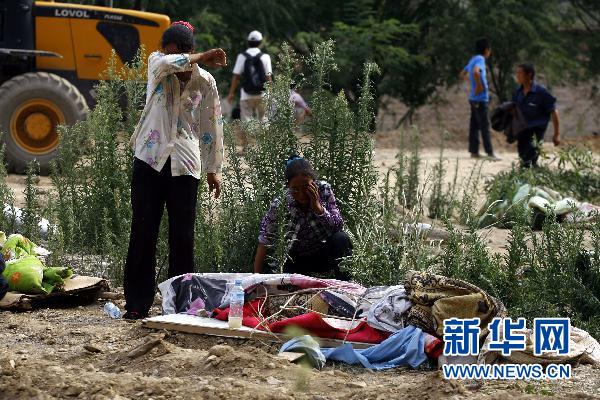 8月9日,在甘肃舟曲灾区,两名当地居民在遇难亲属的尸体旁痛哭。新华社发