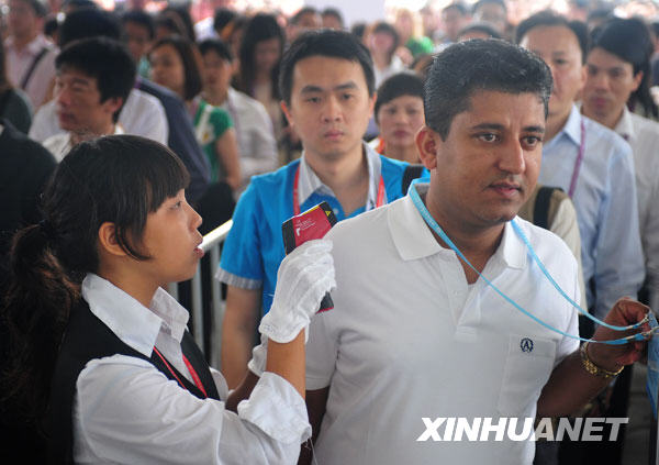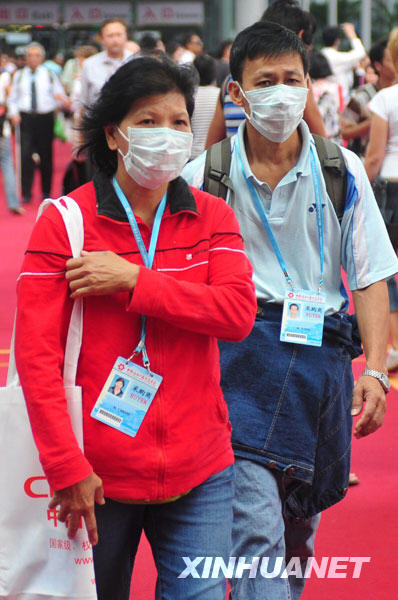 当日,第105届广交会第三期展会拉开帷幕,为严防甲型H1N1流感,参会人员进场前一律先测体温。新华社记者 卢汉欣 摄