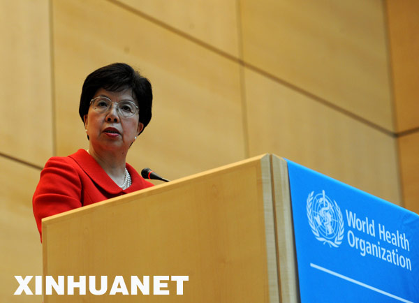 当天,第62届世界卫生大会开幕,陈冯富珍在会议上呼吁全球加强协作,应对甲型H1N1流感。新华社记者曾毅摄