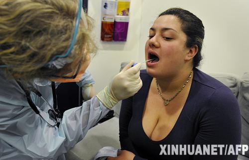 6月3日,在澳大利亚墨尔本的奥斯汀医院的甲型H1N1流感诊室外,一名护士为阿莉莎做检测。当日,澳大利亚政府提升其维多利亚州甲型H1N1流感警戒级别,同时在全国范围内发出通告,要求密切关注可能发展的疫情。维多利亚州现阶段是澳大利亚确诊甲型H1N1流感病例最多的州,约占全国确诊病例的80%。截至3日上午,澳大利亚确诊感染甲型H1N1流感人数增至501人。新华社/法新