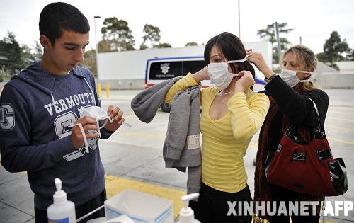 6月3日,在澳大利亚墨尔本的奥斯汀医院门口,人们进入医院前戴上口罩。当日,澳大利亚政府提升其维多利亚州甲型H1N1流感警戒级别,同时在全国范围内发出通告,要求密切关注可能发展的疫情。维多利亚州现阶段是澳大利亚确诊甲型H1N1流感病例最多的州,约占全国确诊病例的80%。截至3日上午,澳大利亚确诊感染甲型H1N1流感人数增至501人。新华社/法新