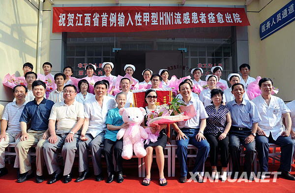 当日上午,江西省首例甲型H1N1流感患者痊愈出院。江西省胸科医院为患者举行了出院仪式。江西省卫生厅表示,这名患者体温正常已超过3天,咳嗽、咽痛、流涕等流感样症状消失3天以上,无并发症,且16日、17日连续两天咽拭子甲型H1N1流感病毒核酸检测均为阴性。