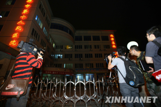 5月10日,媒体记者在成都市传染病医院外采访。当日下午,卫生部接到四川省卫生厅报告,四川省人民医院发现1例发热病例,根据临床表现和实验室检验结果,初步诊断为甲型H1N1流感疑似病例。目前,患者已转送成都市传染病医院隔离治疗,其就诊过程中的密切接触者也已采取医学观察措施。新华社记者陈建力摄