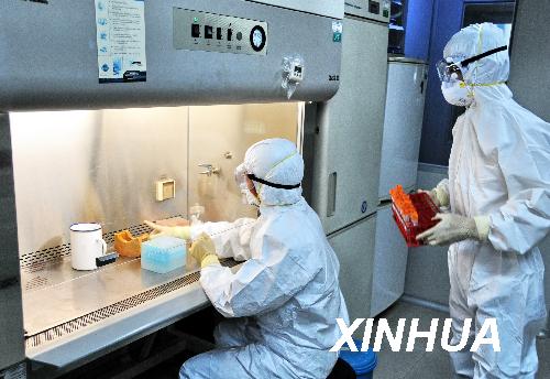 6月8日,科研人员在进行毒株种子批的制备工作。当日,来自美国的甲型H1N1流感疫苗生产用毒株NYMCX-179A,从美国运抵北京,并经过通关、检验检疫等手续后,送抵北京科兴生物制品有限公司。已经完成疫苗临床研究工作的北京科兴当晚启动了毒株种子批的制备工作,这标志着甲型H1N1流感疫苗的批量生产正式启动,并有望于7月底生产出首批疫苗。新华社记者 邢广利 摄