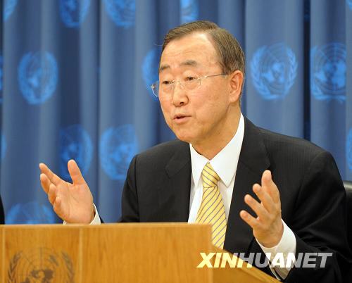 6月11日,联合国秘书长潘基文在美国纽约联合国总部举行的每月例行记者招待会上讲话。当日,潘基文在记者会上说,全世界对甲型H1N1流感病毒的传播必须保持警惕,密切关注流感病毒对发展中国家的影响,展示全球在这一问题上的团结。新华社记者申宏摄