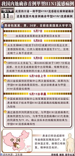 图表:我国内地确诊首例甲型H1N1流感病例 新华社发