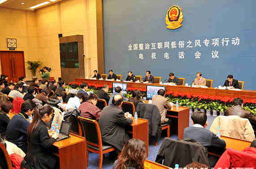 人民网北京2月14日电(记者赵亚辉)今天下午,全国整治互联网低俗之风专项行动办公室在京召开网站负责人座谈会,探讨建立健全整治互联网低俗之风长效机制。人民网、新华网、央视网、中青网、新浪网、搜狐网、中华网、百度、腾讯、网易等14家网站负责人参加座谈会。