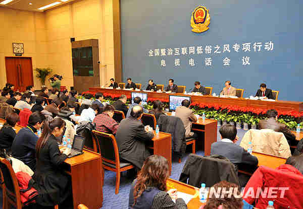 1月5日,国务院新闻办等七部委召开电视电话会议,部署在全国开展整治互联网低俗之风专项行动。新华社记者刘建生摄