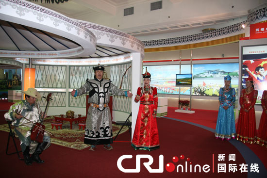 在展览现扬,人们很容易被浓郁的少数民族风情所吸引。在内蒙古自治区展厅,蒙古族歌手表演的蒙古长调,引来观众们驻足聆听。蒙古包里,蒙族姑娘热情为观众献上特产奶酪,观众们边品尝,边询问,其乐融融。