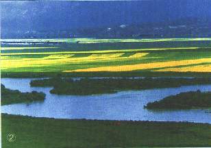 冰川用它甜美的乳汁灌溉着天山南北的片片绿洲,使得新疆成为我国极少降水地带的灌溉农业区。新疆的湖泊也具有干旱环境的特点,大多数的湖泊是河流的终点。