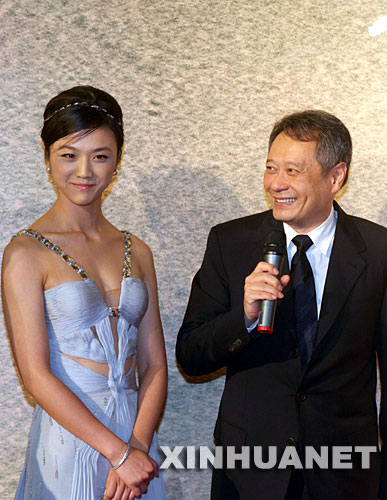 10月31日晚,电影《色·戒》在上海影城举行内地首映礼。导演李安和演员汤唯(左)在首映礼上。 新华社记者刘颖摄
