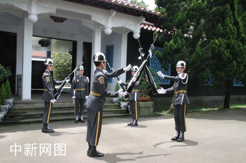 头寮蒋经国陵寝军仪队花式交接仪式。