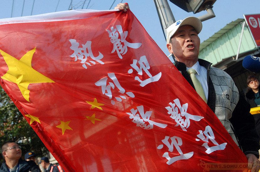 2009年12月21日,海协会海基会领导人第四次会谈在台中裕元花园酒店举行。图为会场外上千名欢迎陈云林访台的民众。来源:人民网