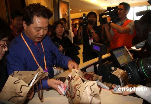 图为“安利心印宝岛万人行”首发人员在台北故宫博物院购物。中新社发 陈立宇 摄