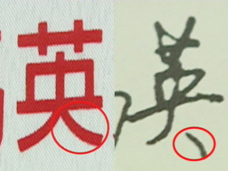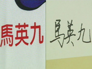 马英九事事求精准,签名在乎“一点”。