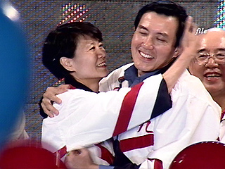 学马嫂90度鞠躬,马英九向选民道谢。