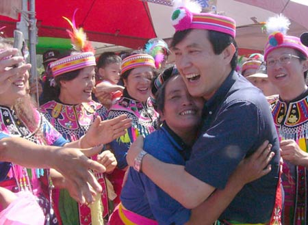 中新网2月27日电 台湾《联合报》日前选登一组资料图片,以“漏网镜头”为名展示了二00八年台湾地区领导人选举国民党候选人马英九少为人知的一面,其中不乏大秀胸肌、粉墨豋场、与女性选民拥抱的有趣画面。