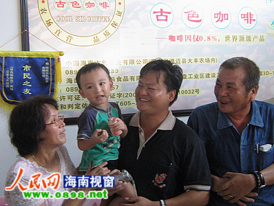 在谈到自己的妻儿时,林文定的话语中透出一丝辛酸,“妻子2002年就跟我一起来到海南,我们就在咖啡地的简易临时木屋里吃饭、睡觉、工作,妻子和我受了很多苦。”他的第二个儿子也在海南出生,几年来也一直跟在他们身边。“孩子想要上学也很麻烦,最近的学校也要3公里远,他长这么大也没有玩伴,都是自己孤零零的。” 林文定表示,虽然一起受了这么多苦,但妻子从来没有一句怨言,一直默默的支持着他。他说:“古色咖啡的广告语是来自台湾,生根海南。生根海南既是咖啡生根发芽,也是我们家在这里生根,我的小儿子就在这里出生长大。”7年在海南的生活让林文定对这片土地产生了深深的感情,他又创建了自己的品牌“强那(英文china的译音)咖啡”,信心满满的林文定还说:“我要让我的强那咖啡走向全亚洲,全世界,让西方人也能喝到我们海南出产的咖啡。”(实习生付超摄影) |