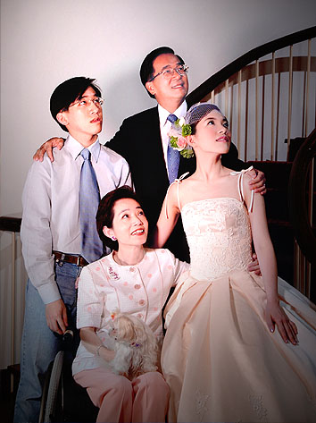 陈水扁吴淑珍带着年幼的陈幸妤和陈致中。