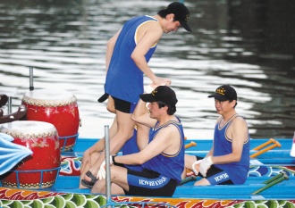 图为2005年端午龙舟赛前,当时的台北市长马英九(中)与副市长金溥聪(左)互相拍手打气的情形。右为当时另一副市长叶金川,叶也可能出任党副秘书长。