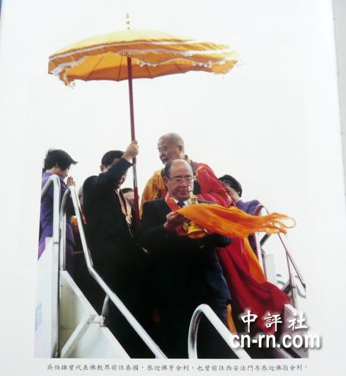 吴伯雄随星云大师赴泰国恭迎佛牙舍利。(中评社 倪鸿祥翻拍)