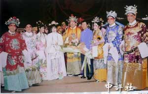 吴伯雄(中)2003年,难得粉墨登场。(中评社 倪鸿祥翻拍)