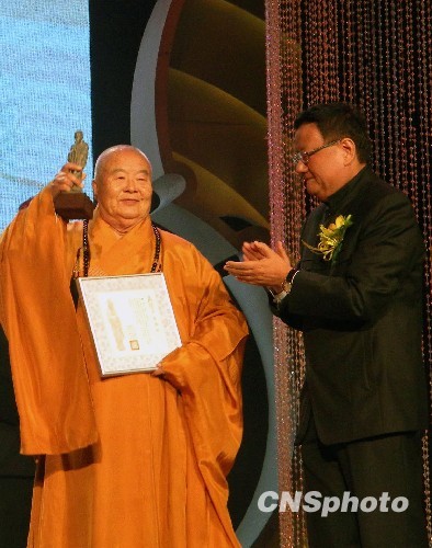 1月13日晚,“智慧东方——2009中华文化人物颁授典礼”在江苏南京举行,星云法师获得“中华文化人物”终身成就称号。