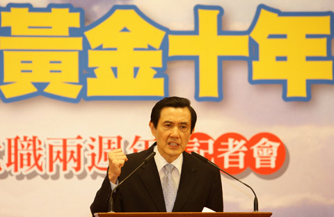 马英九19日举行就职两周年中外记者会,勾勒出台湾未来黄金10年的愿景