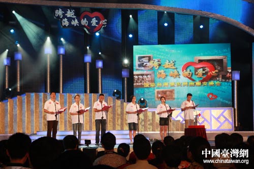 “跨越海峡的爱心——援助台湾受灾同胞赈灾晚会”8月20日晚在北京举行,图为濮存昕、蒋雯丽、张涵予等朗诵《同胞心》,表达两岸同根同源的情谊。(中国台湾网 高斯斯 摄)