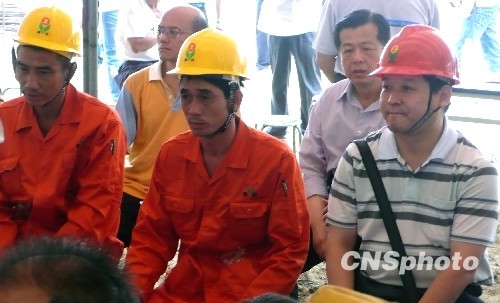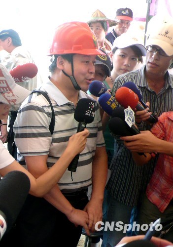 8月23日,大陆3名技术人员出现在台湾高雄县灾民安置活动板房建设工地。深圳雅致集成房屋公司工程部经理杨云(右一)表示,他们一行将为活动板房搭建工作提供技术支持,并对现场施工人员进行培训;另外,公司有7个技术人员待命、可随时前来协助,就等台湾方面通知。新社发 刘舒凌 摄