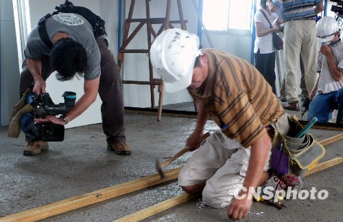 8月23日,大陆3名技术人员现身台湾高雄县灾民安置活动板房建设工地。深圳雅致集成房屋公司工程部经理杨云接受访问时表示,他们一行将为活动板房搭建工作提供技术支持,并对现场施工人员进行培训;另外,公司有7个技术人员待命、可随时前来协助。中新社发 刘舒凌 摄