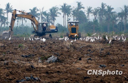 8月23日,大陆3名技术人员抵达台湾高雄县灾民安置活动板房建设工地,将为活动板房搭建工作提供技术支持,并对现场施工人员进行培训,首批100户活动板房的兴建工作相信能够在今后3周内完成。图为工程车加紧进行整地工作。中新社发 刘舒凌 摄 |