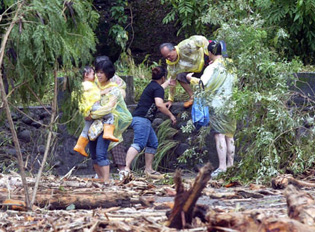 台高雄县六龟乡道路被冲断 灾民徒步走出]]>