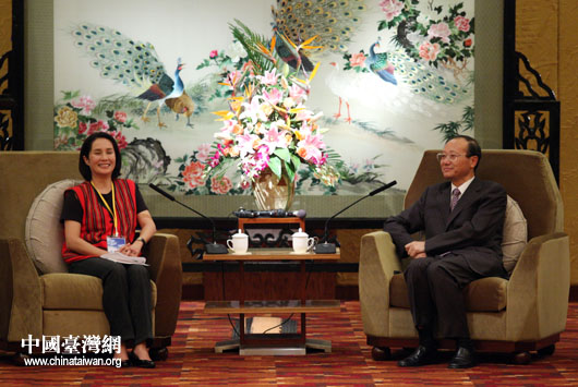 8月20日下午,国家旅游局局长、海峡两岸旅游交流协会会长邵琪伟会见台湾少数民族代表团团长高金素梅一行。(中国台湾网 钟宝华 摄)
