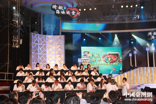 “跨越海峡的爱心——援助台湾受灾同胞赈灾晚会”8月20日晚在北京举行,图为晚会现场,由两岸娱乐界及体育界明星以及志愿者组成的爱心热线方阵,他们接收着各界对台湾同胞的温情援助。(中国台湾网 高斯斯 摄) |