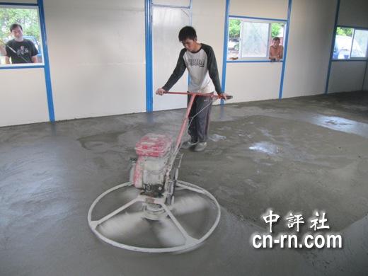 活动板房昨天下午进行内部整平工作。来源:中评网