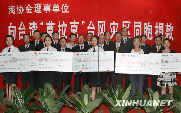 8月12日,海协会理事单位向台湾“莫拉克”台风灾区同胞捐款仪式在北京举行,首批共18家理事单位合计捐款1.06亿元人民币、500万元港币。新华社记者 邢广利 摄