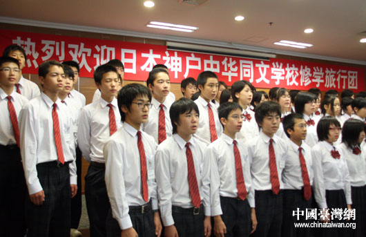 8月25日晚,日本神户中华同文学校修学旅行团通过全国台联向台湾南部灾区捐款约5万元人民币。捐款结束后,同学们合唱《我和你》与《朋友》两首歌曲,表达对台湾灾区受灾同胞的祝福。(中国台湾网 钟宝华 摄) |
