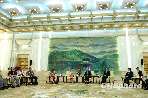 8月19日下午,中共中央台湾事务办公室主任王毅在北京人民大会堂台湾厅会见了台湾少数民族代表高金素梅等一行,王毅对台湾遭受台风“莫拉克”袭击表示了深切的慰问。 中新社发 侯宇 摄