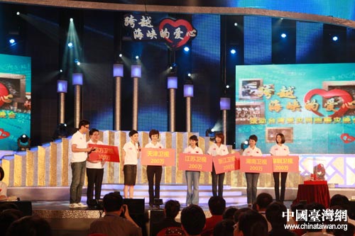 “跨越海峡的爱心——援助台湾受灾同胞赈灾晚会”8月20日晚在北京举行,图为主办方大陆六家卫视为台湾受灾同胞捐款,合计1300万人民币。(中国台湾网 高斯斯 摄)