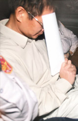 吴淑珍胞兄吴景茂(中),昨天又被特侦组借提讯问,他面露无奈的向外探望。(台湾《联合报》图)