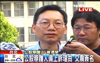 陈水扁签完了状纸,曾德荣马不停蹄要赶往法院递交上诉状,因此无暇说明上诉理由究竟为何。