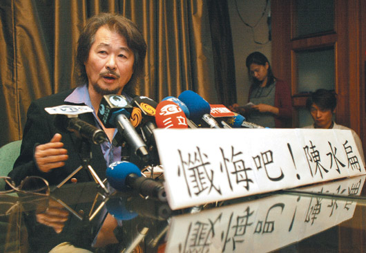 施明德召开记者会,呼吁陈水扁忏悔。图:台湾《联合晚报》