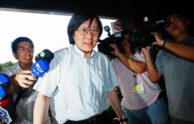 台前“国安会秘书长”邱义仁赴特侦组说明陈水扁洗钱疑案。图片来源:台湾“中央社”